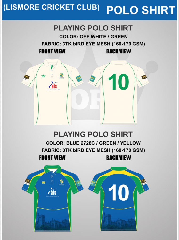 In line with our commitment to providing value to our members, we are excited to unveil a new club shop (coming soon), where members can purchase the latest Lismore Cricket merchandise, including the newly updated kit from Boru Sports. Furthermore, thanks to the generosity of AFS, we are thrilled to offer a special launch price for our playing jerseys. The first 30 units sold of both the white playing top, and the blue T20 top will be available at a subsidised price. We encourage every member to take advantage of this limited-time offer and secure their jerseys promptly to show their support for our sponsors.